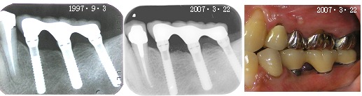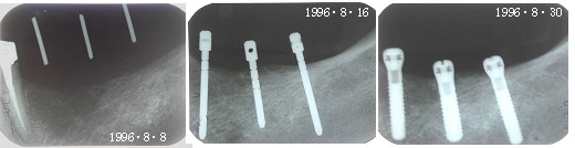 - 歯ぐきを開いて顎の骨にフィクスチャーを埋め込み、歯ぐきを縫合します。手術の時間は1〜2時間です。この後下顎なら3ヶ月、上顎なら6ヶ月待ちます。